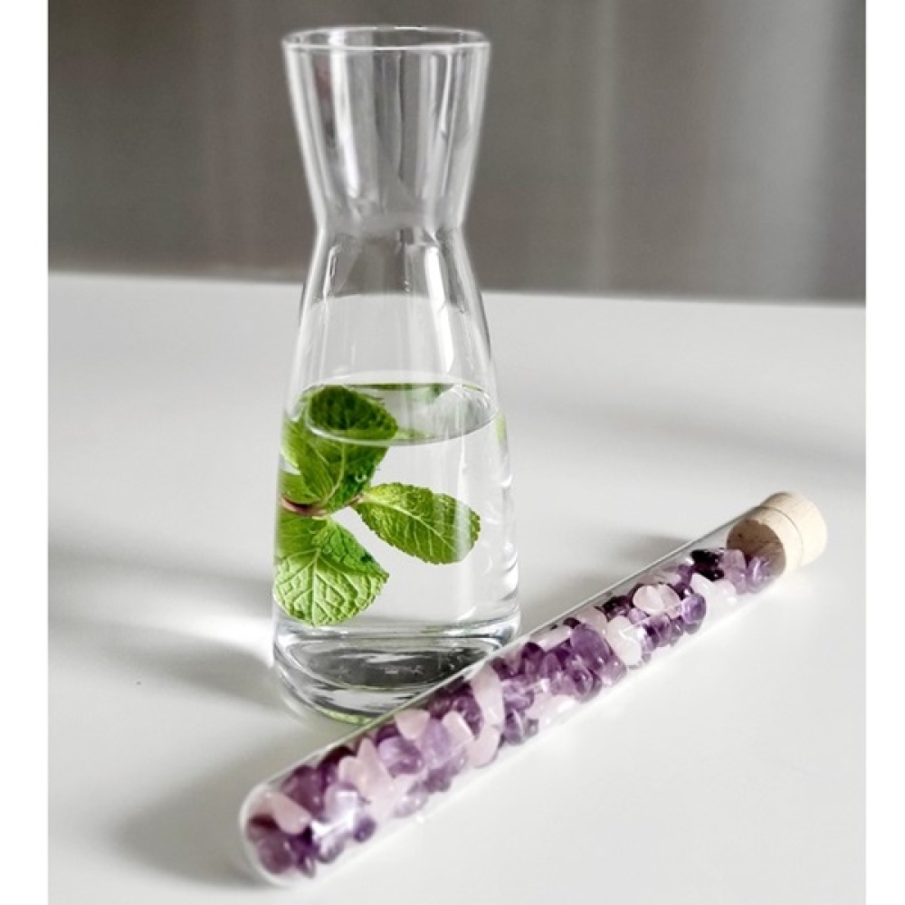 Seit Jahrhunderten nutzen Menschen die Kraft von Edelsteinen, um ihr Wasser zu beleben. Lass Dich vom Kreislauf des Wassers in der Natur neu inspirieren und serviere Dein Edelsteinwasser gleichzeitig in ansprechender Form. Übrigens auch perfekt für Wein um ihm einen angenehmen runden Geschmack zu geben. Unser Edelsteinstab enthält Amethyst und Rosenquarz. Gemeinsam stehen diese Steine für Bewußtheit und inneren Frieden, Sinnlichkeit, Empfindungsfähigkeit und Lebendigkeit. Love what you drink!